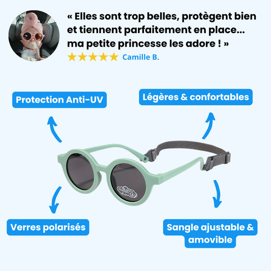 Lunettes de soleil rondes bébé - Polarisées, souples & avec sangle (0-3 ans)