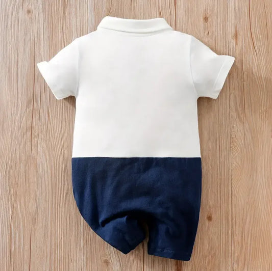 Barboteuse bébé manches courtes coton marinière motif pingouin
