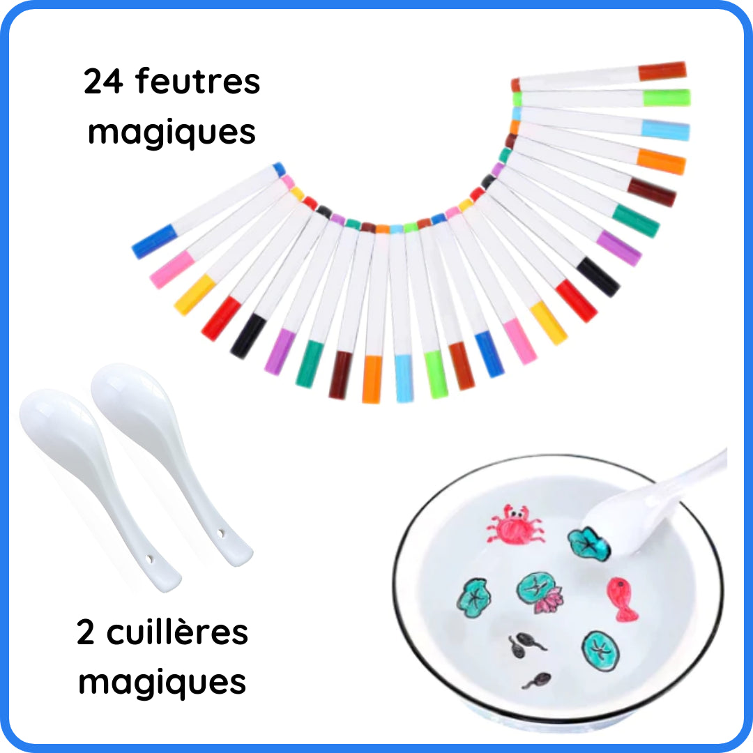 Offrez à votre famille des moments de bonheur et créez des souvenirs mémorables avec notre MAXI kit AquaCréa™, comprenant 24 feutres (16 + 8 offerts) et 2 cuillères magiques !