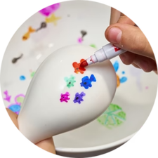 Dessinez sur le dos de la cuillère magique avec les feutres AquaCréa™ (inclus dans le kit).